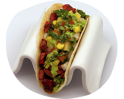 Pork, Pineapple, Onion, Cilantro, Salsa Roja Tatemada, Avocado Salsa on Handmade Flour Tortilla