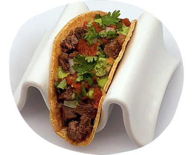 Steak, Onion, Cilantro, Salsa Fresca, Salsa Roja Tatemada, Avocado Salsa on Handmade Corn Tortilla