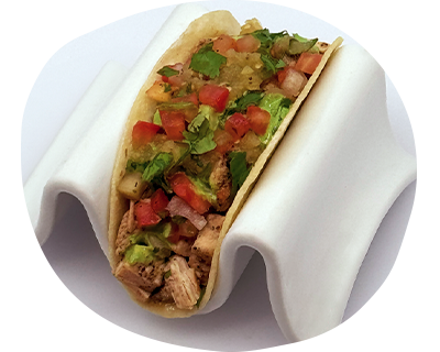 Chicken, Onion, Cilantro, Salsa Verde Tatemada, Avocado Salsa on Handmade Flour Tortilla