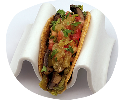 Portobello, Anaheim Chile, Onion, Cilantro, Salsa Verde Tatemada, Avocado Salsa on Handmade Corn Tortilla